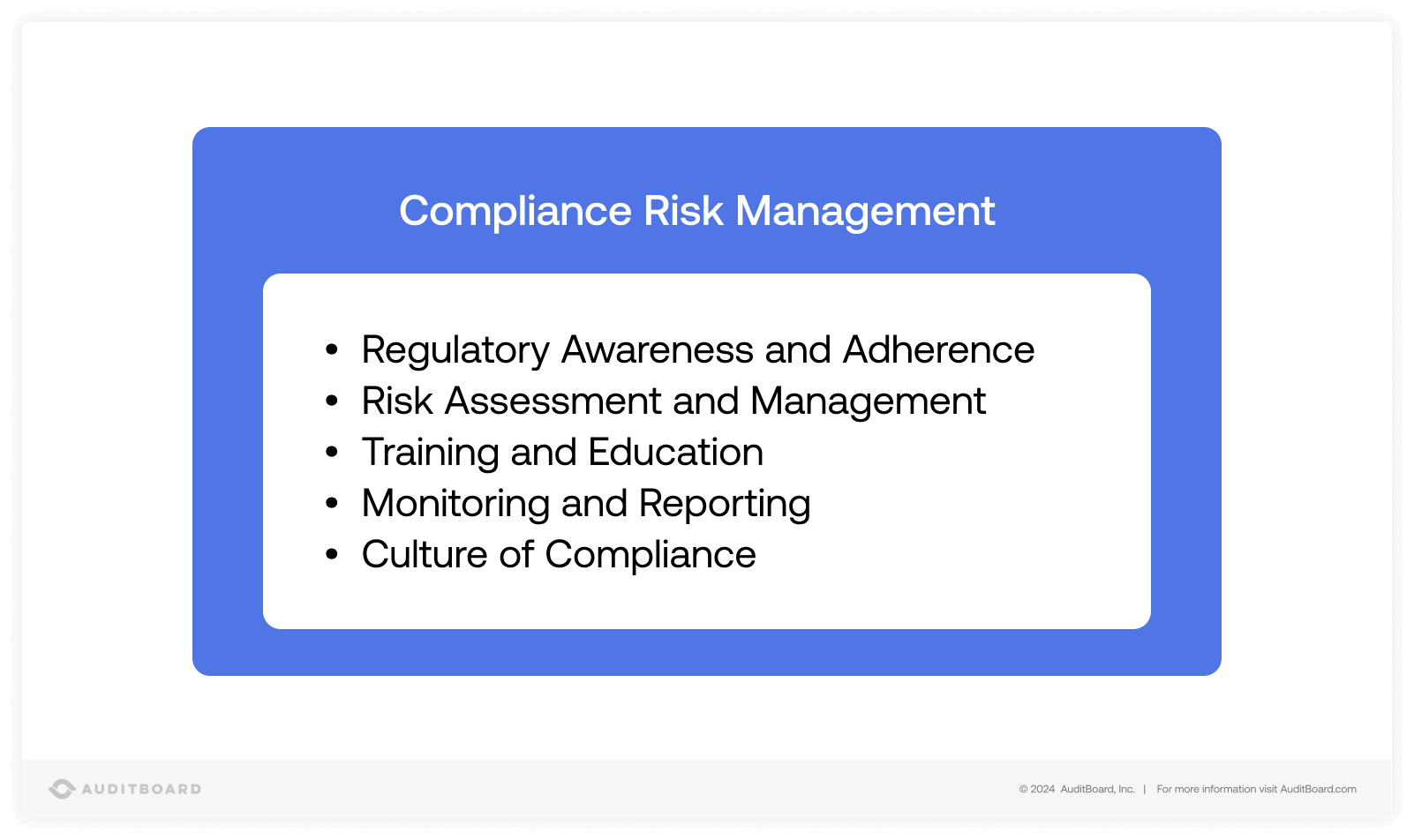 Navigating the intricacies of compliance risk management is no small feat, but the rewards are certainly worth the effort. By adopting a comprehensive, proactive stance, compliance risk management teams can reposition themselves from being perceived as policing the organization and hindering compliance to being proactive enablers of the business. This can include supporting growth initiatives through industry and geographic expansion and quickly identifying and mitigating compliance risks. Leverage risk assessments to highlight areas of focus, champion clear communication and targeted training across all tiers of your organization, and tailor your strategies to address the unique challenges your industry presents.