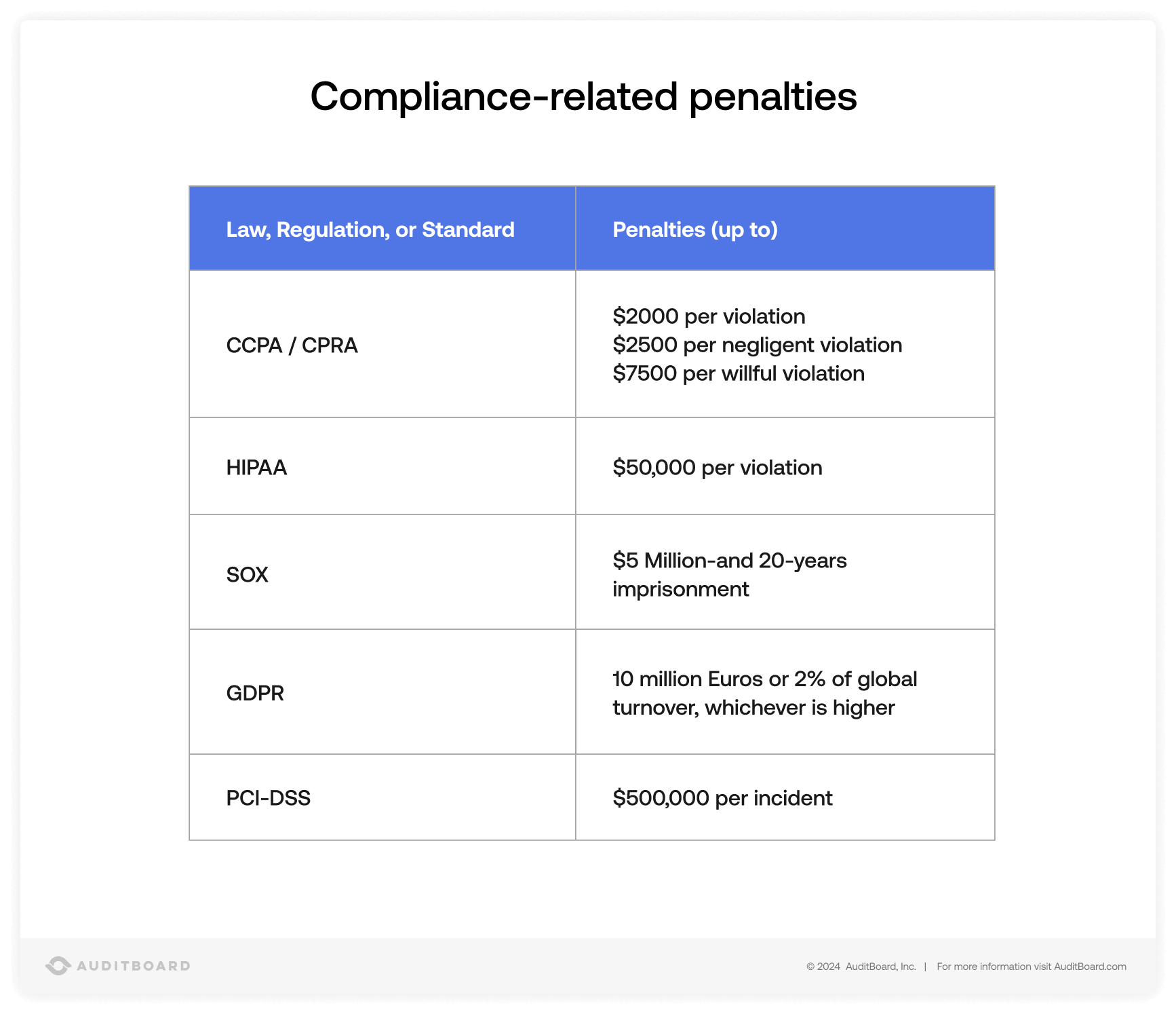 Regulatory compliance requires ongoing effort and commitment from the entire organization. The most successful regulatory compliance programs are those that are a natural extension of the company’s values and culture, and those that view compliance as an opportunity for continuous improvement, rather than a burden. Regulatory compliance has numerous benefits for companies, including improved workflow, improved public image, resilience, and increased efficiencies. Learn how AuditBoard’s integrated compliance management system can help you achieve compliance and scale your compliance program as requirements are updated and as your organization grows.