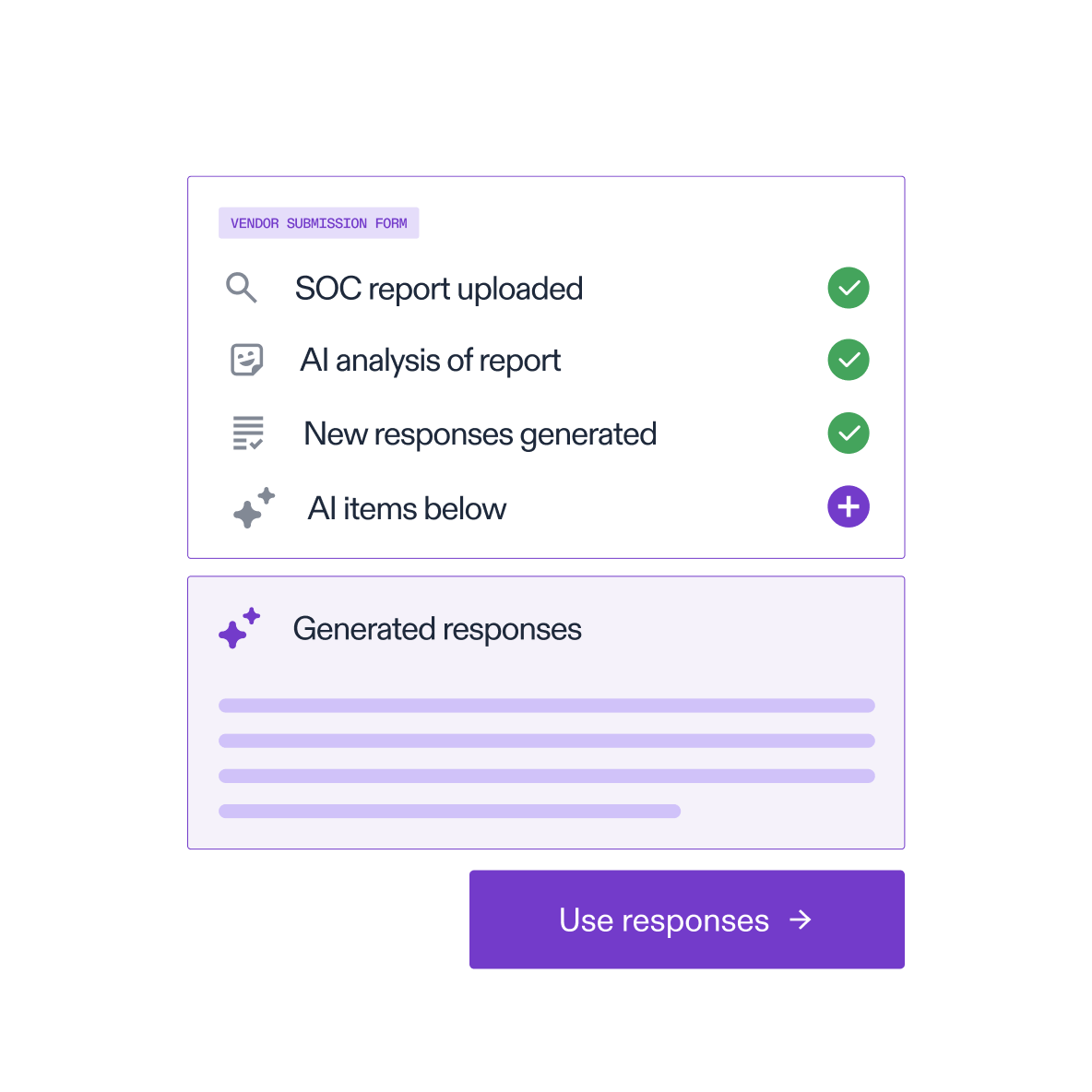 Scale third-party risk management with AI-generated questionnaire responses powered by vendors’ existing security documentation and previous responses.