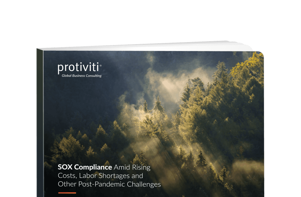 Protiviti{: target="_blank" rel="noopener noreferrer"}’s 2022 SOX compliance survey, conducted in March and April 2022 with support from AuditBoard. The survey reflects the current state of SOX programs as organizations face inflation, rising interest rates, labor shortages, and other economic challenges affecting internal control environments.